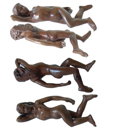 Es un desnudo inspirado en un boceto de Matisse, convertido en una escultura de madera que tiene lo que mas admiro del arte la libertad restringida que da la naturaleza con el jaspe y la falta de cánones del cuerpo humano.