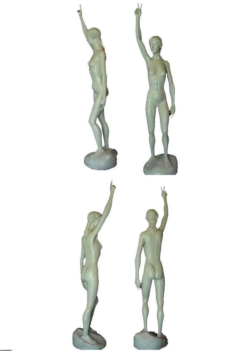 Esta escultura, es la primera que hice de una figura desnuda, carece de realismo, pero tiene la perfecta idealización de un hombre joven sobre el cuerpo femenino.